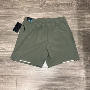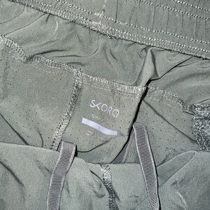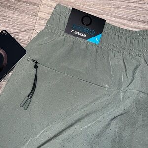 Skora running shorts. Size L. NWT. Color is agave. 7” inseam. Zipper pocket and reflective hits.