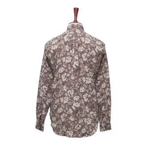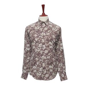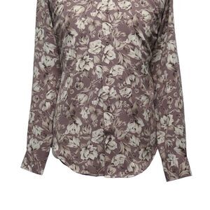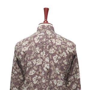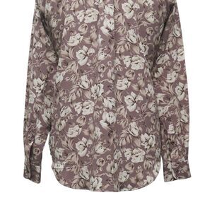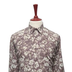 Mens Silky Shirt Button Up Floral Lavender Beige Casual Hawaiian Beach Medium