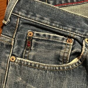 Abercrombie and Fitch flare 32WX 30 L worn-in men’s jeans.