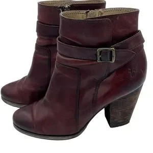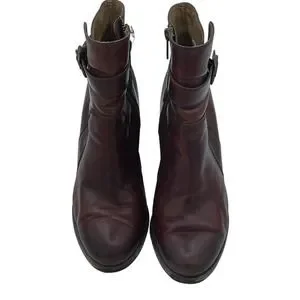Frye Patty Riding Boot Brown Leather High Block Heel Zipper Buckle 8.5