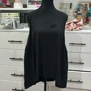 Black colored. Pleated in the back with a razor back. Never worn and super cute!