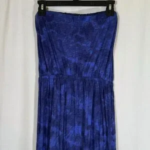 EXPRESS Royal Blue Tiedye Size Medium Strapless Dress Tube Top Sheer Bottom