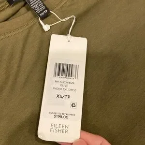 Beautiful olive green fine Tencel jersey dress by Eileen Fisher. Brand new with tags.