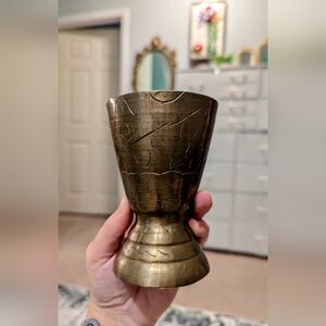 Vintage Brass Hand Etched Chinese Cup- Rare! Heavy, Sturdy-China. Antique