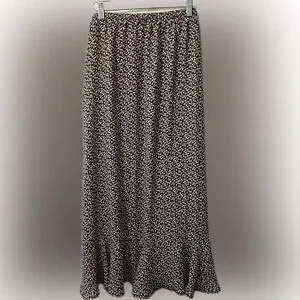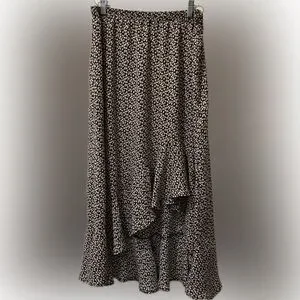 Max Studio High-Low Asymmetrical Floral Print Prairie Boho Ruffle Midi Skirt. Size L