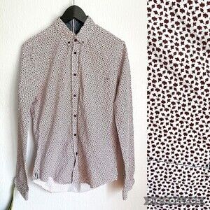 Zara Man Men's M Slim Fit Button Down Long Sleeve Shirt Fall Leaves Cotton