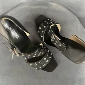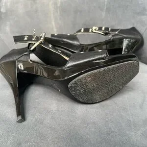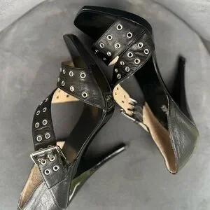 Leather black heels , in excellent pre owned condition, stylish and soft leather. Very well made! Fit perfect for someone size 10!
