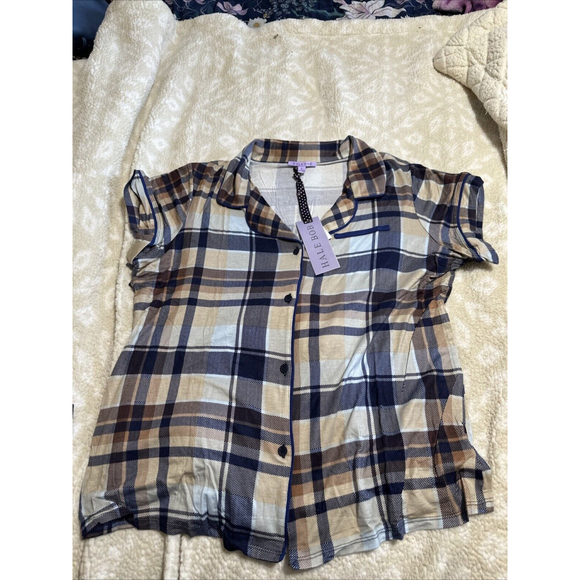 HALE BOB Womens Pajamas Shirt Pants Set Plaid Size LARGE NEW NWT $129.00