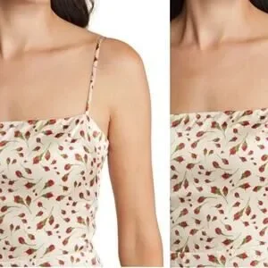 NEW Reformation Kosta Marion Dress Silk Smocked Floral Bud Ivory Size 8