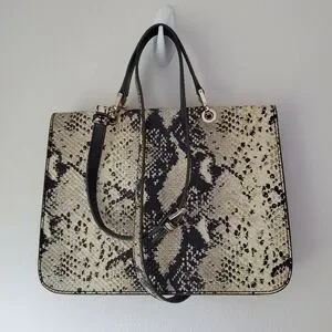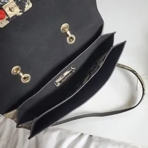 Furla Top Handle Leather Evening Bag Crossbody Purse Snakeskin Print