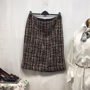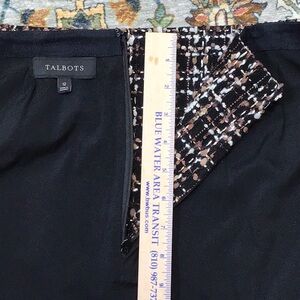 🍂TALBOTS Black Brown Cream Gold Tweed Lined Back Zip Knee Length