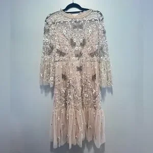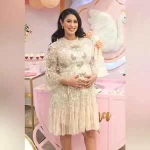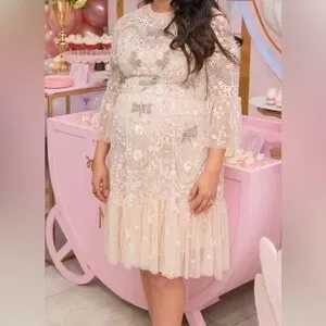 This dress is absolutely stunning. I used it once for my baby shower it’s in excellent condition!