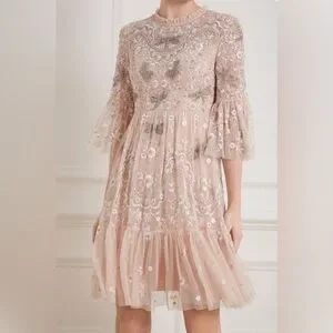 Needle and Thread Dragonfly Garden beaded short-sleeved tulle midi dress