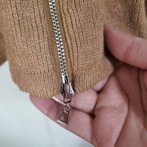 This sweater has a full zip front. Rayon Blend. Pockets in front.