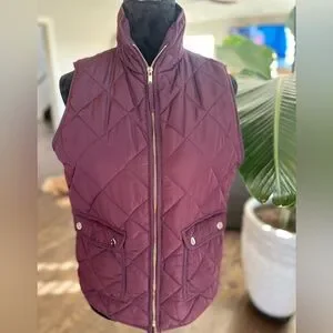 Thread & Supply Maroon Quilted Puffer Vest Gold Button/Zipper Women Size Medium