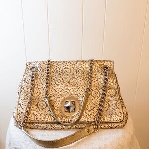 Kate Spade gold leather chainlink handbag, unique.