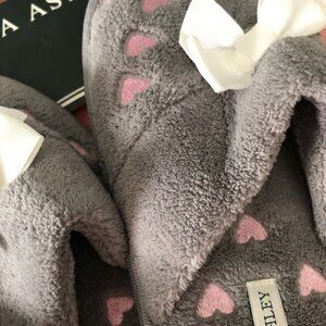 Laura Ashley Gray Slippers with Pink Hearts – New with Tags