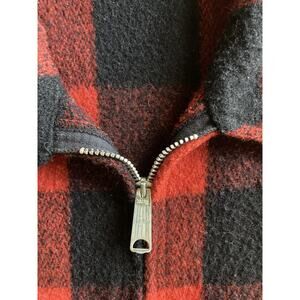 Vintage 1950's Sheraton Sportswear black/red buffalo plaid wool zip up jacket. Marked a Men's L will work for a Medium as well depending on your fit preference. Please refer to the measurements provided. The jacket is in really good shape for it's age. I can't find a flaw on it. Cool, big talon zipper, original buttons all still intact. Clean. Questions? Fit help? Please ask. All sales final. I do not accept returns. Thanks for looking.