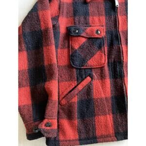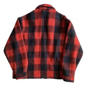 Vintage 1950’s Black Red Buffalo Plaid Wool Mackinaw Field Coat Jacket Men’s M