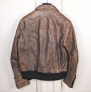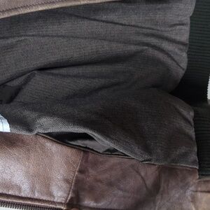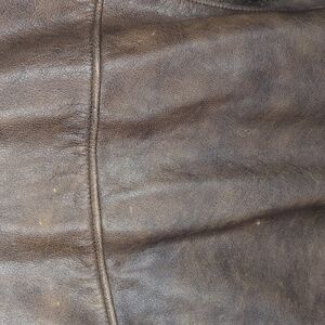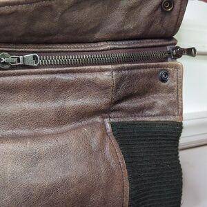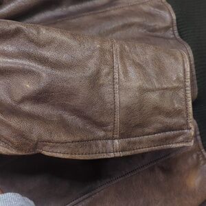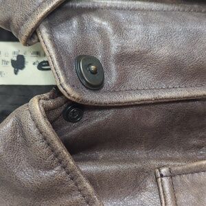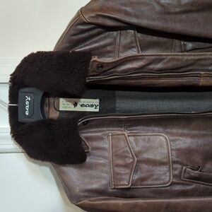 Quality genuine leather. Great for outdoor adventures and brutal weather. Has reflection strips on the inside across the chest. Comes with detachable brown faux shearling collar.