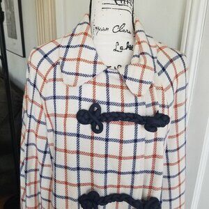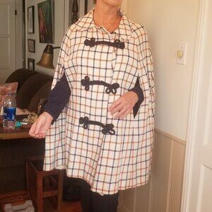 Beautiful vintage original Country Place cape is fully lined and in excellent condition with the exception of a slight stain on the lining, see picture. No flaws of any kind on the outside cape that closes with fun frog closures. No size or fabric tags but is a one size fits most and definitely a wool blend. Kicky and fun!