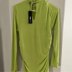 Fashion Nova Lily Ruched Long Sleeve Maxi Dress Size Large Lime Green New