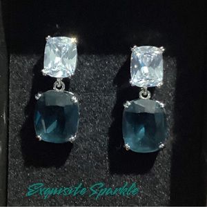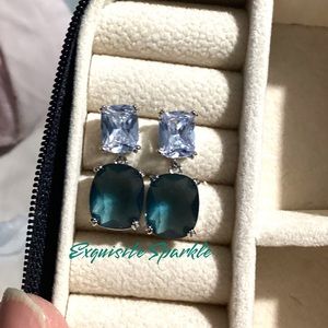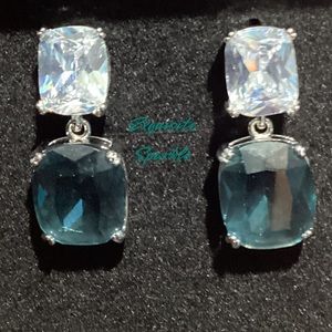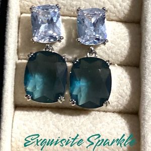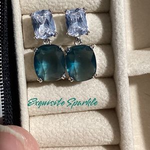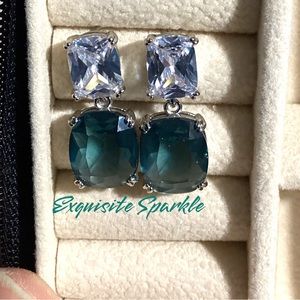 - 💋Elegant White and Teal Zircon Drop Earrings
