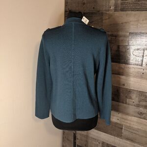 New merino wool sweater from Talbot's. Size large petite. Gorgeous deep mallard blue in color. Goldtone buttons. Smoke free home. Thanks for shopping my closet.