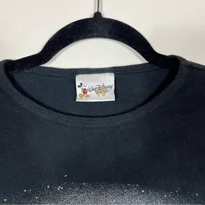 Walt Disney World Park Baby Tee Shirt XL Castle Glitter Sparkle Y2K Black
