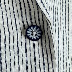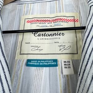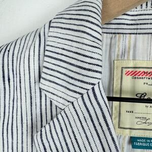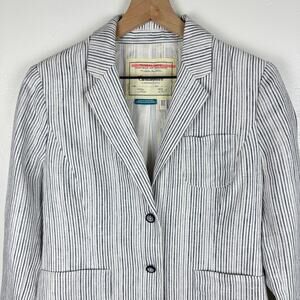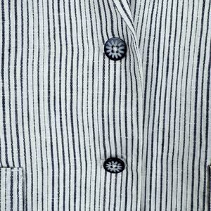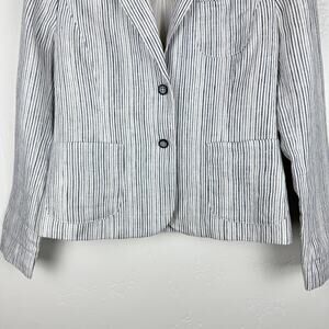 Anthropologie cartonier blue pin striped linen button front blazer 4