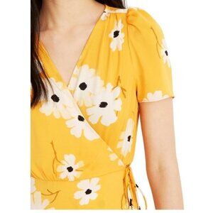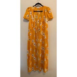 Madewell Midi Dress Yellow White Floral Print Puff Sleeve Wrap Medium