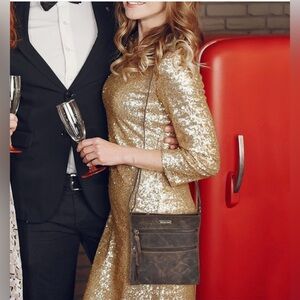 -Dimensions: 9.5 x 9 x 2 inches/multiple compartments, including 3 exterior zip compartments, 1 interior zip compartment, and a fully lined bill compartment/keep your phone secure with the convenient mobile holder/Adjustable strap (20 inches to 26 inches)