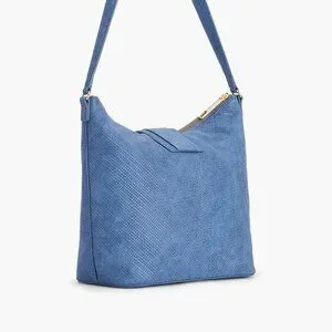 Faux basketweave leather adds a seasonal lift to the iconic hobo silhouette. In timeless blue, this roomy zip-top bag comes with gold-toned hardware and an inner pocket for easily stowing essentials.