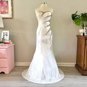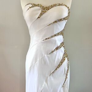 🚨SALE🚨 La Femme White Gold Beaded Strapless Trumpet Gown Prom Dress 4