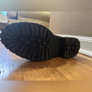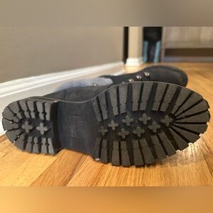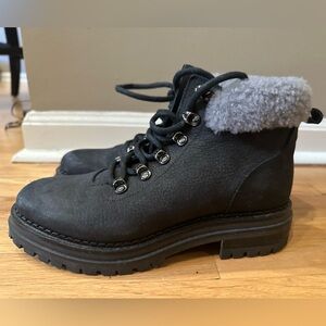 MGemi, made in Italy black buckskin leather bootie. Shearling for warmth and style at the ankle. Lace up front, thick sole for comfort. Water resistant. Rarely worn.