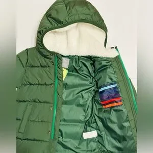 NEW WITH TAGS Parker puffer coat for kids by Primary. Super warm and cozy. Has some great features including a soft, fleece lined hood, interior cuffs with thumb holes, two front pockets and a cute rainbow color interior pocket. Has an inner “ I belong to “ label.