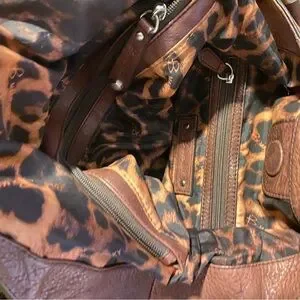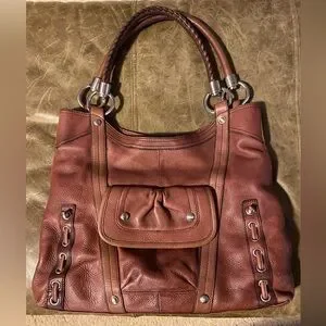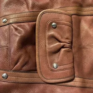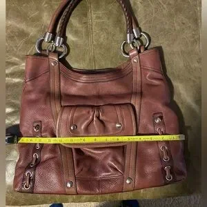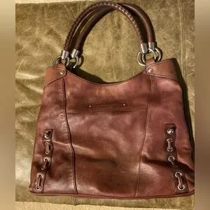 Brown Leather Large Bag 15" Wide x 12" Tall Good Preowned Condition