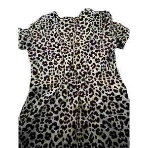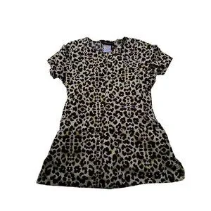 This Baby Phat leopard print scrub top features a playful design, offering a chic and stylish look. Its short sleeves and elastic waist provide comfort and a flattering fit.