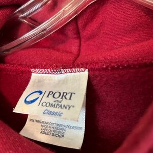 Adult small hoodie in trademark red color.