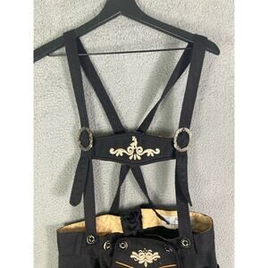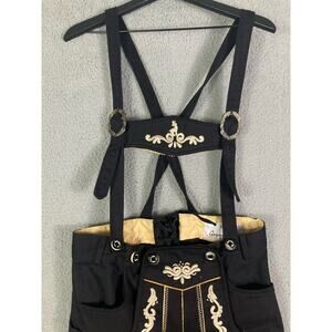 Men's Black Bavarian Lederhosen Jeans Suspenders Pants Sz 46 XS German