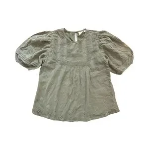 Emberley Macall Eyelet Blouse with Lace Trim, Size XS.