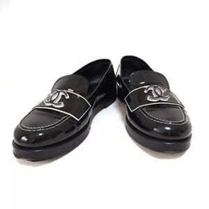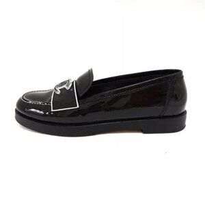 100% Authentic CHANEL Black White Patent Leather Women's Shoes 680-101824
