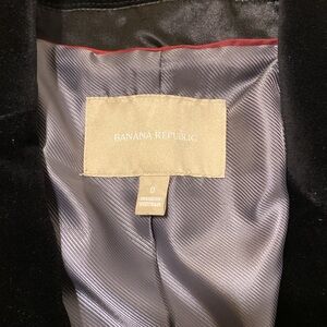 Black velvet Banana Republic blazer size 0. EUC. Three usable pockets, beautiful blazer! Bust is approximately 16.5 inches laid flat. No damage.
