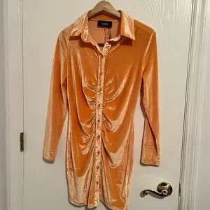 NWT Orange Cider Gathered Velvet Dress