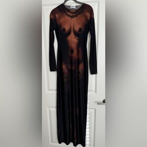 Jean Paul Gautier The Long Ebony Body Tattoo Dress Dark Size S Nude NWOT
