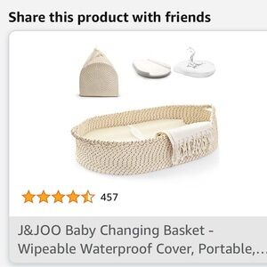J&JOO Cream Baby Changing Basket, Waterproof, and Portable. New in bag.