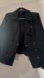 Black, adjustable sleeves that you can roll up and clasp with a button, silver button detail