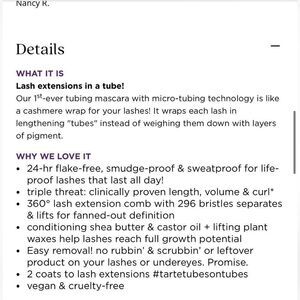 🦋Pick 5/$25 TARTE Tartelette Tubing Mascara New Black Travel Sz