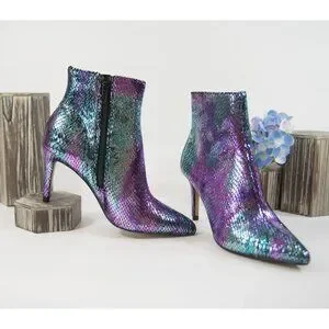 Betsey Johnson Albaa Iridescent Faux Snake Boots 6