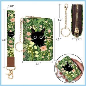 🧿【Unique Design】 The small card wallet and lanyard strap are design with a black cat that hiding in vibrant flowers, which is both cute and mysterious. This unique design adds a touch of personality to your daily routine. Whether you prefer colorful designs or subtle, there's something for every taste. Small size for women who like compact designs and suitable for traveling, shopping, party, etc.